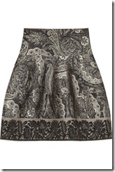 Finally we have a wonderfully wintery metallic and texturally inspired look. This excites me because of the divine proportions of the Etro Natalie wool-blend skirt. Its A-line cut is so flattering and even better because the wide hem will emphasise the cinched in waist creating a feminine figure. For a smart grown up look I have re-used the well executed Lanvin shirt. Teamed with the Lanvin metallic boucle jacket we are incorporating the luxury baroque trend that is so appropriate for the winter. With all the royal hype of 2011 why not add a sense of majesty with thick wondrous materials. These MiuMiu bejewelled pumps go perfectly! I suggest some thick black tights or even dark grey ones for the cool winds our Autumnal months offer. For night time this ivory Stella McCartney corset compliments the skirt so perfectly, again emphasising and enhancing a stunning figure. It is appropriately named the Josephine marrying satin corset to go with my royal theme for this outfit, having had a royal wedding this year too! I have repeated the lace shoes to make it modern and the cut of this shoe-boot is do-able because of the a-line skirt. Ending at this point on the bottom of one’s calf is riskily unflattering but teamed with the skirt the proportions and height of the heel will keep your pins looking long and slim!